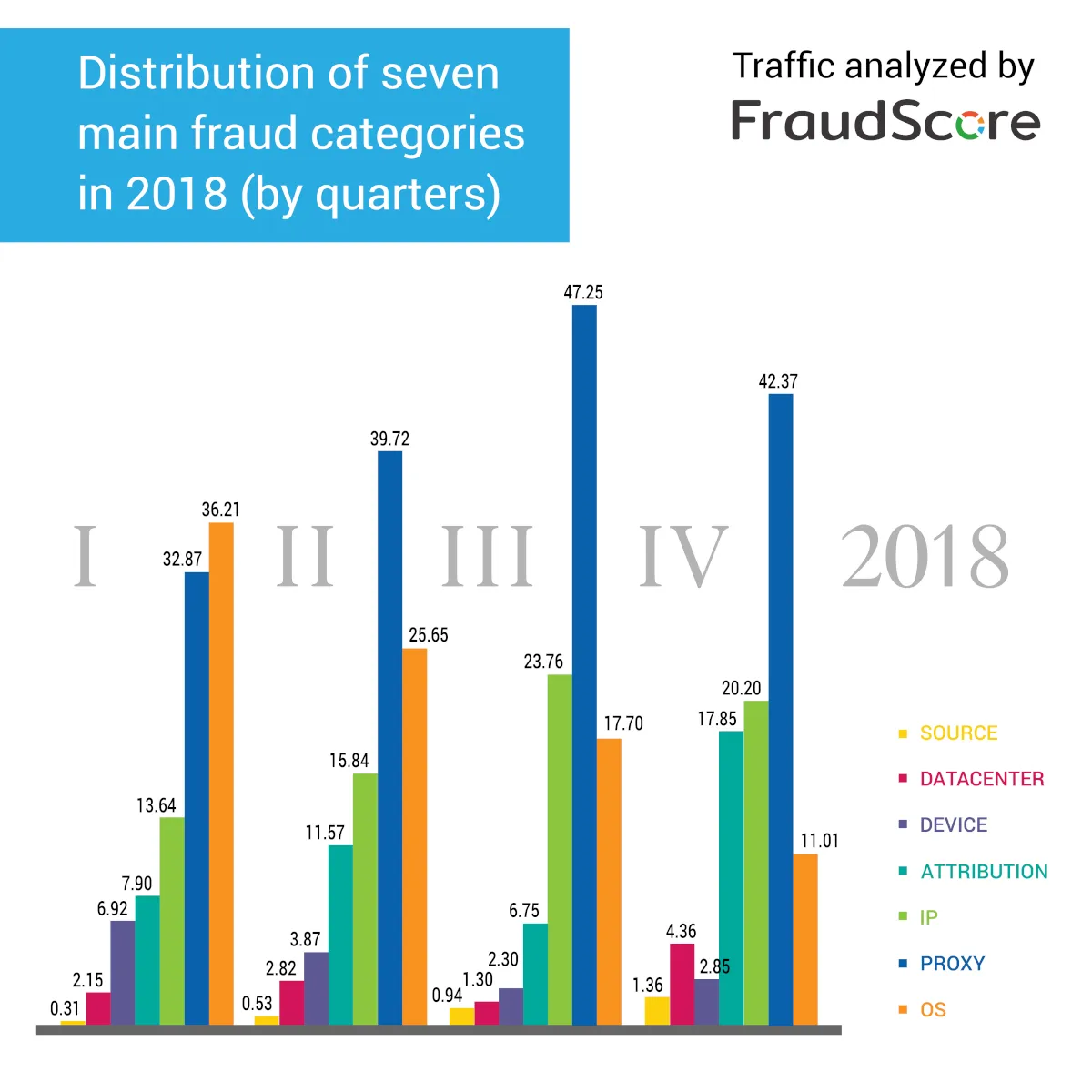 For 2019, we expect botnets and in-app fraud to lead, with OTT fraud growing strongly in the second half of the year. In the first quarter, proxy fraud and IP distribution anomalies were the most common types. Post-install event analysis is also becoming a key method for detecting fraud.