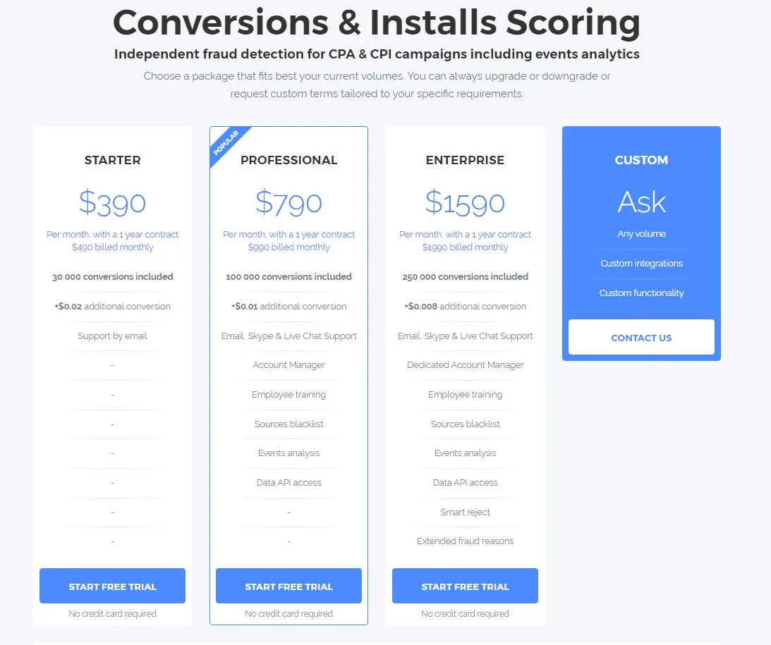 - There is also a special offer for app developers who have less than 15,000 paid installs monthly — please contact FraudScore team for the details of this offer.